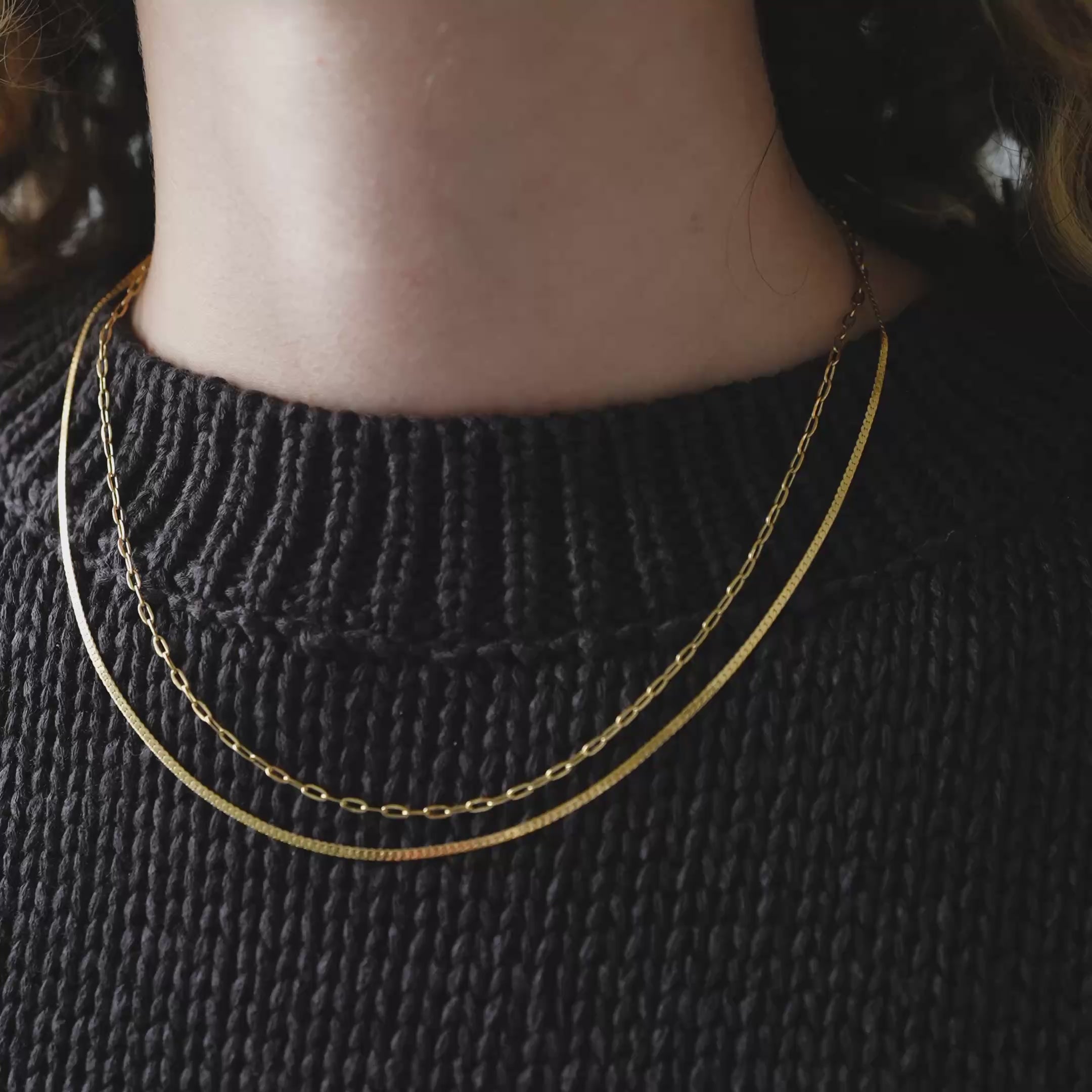 Two in one, and absolutely iconic. The Waterproof Gold Double Layer Paperclip Necklace brings together the two most loved chains in jewelry history — the snake and the paperclip. Brenda Grands reimagined this combo in a dainty, everyday version that feels fresh, effortless, and timeless.